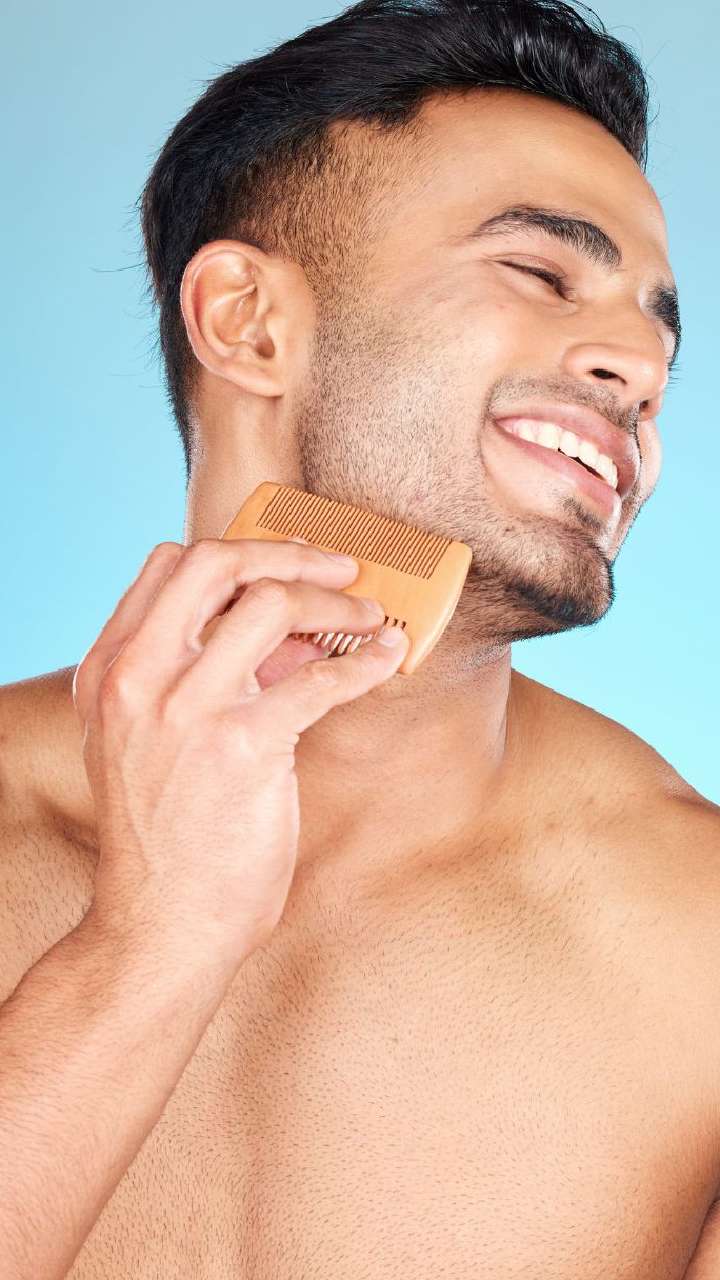 Gently brush and comb your beard in the direction of hair growth, ensuring an even distribution of oils. This stimulates hair follicles and enhances growth.