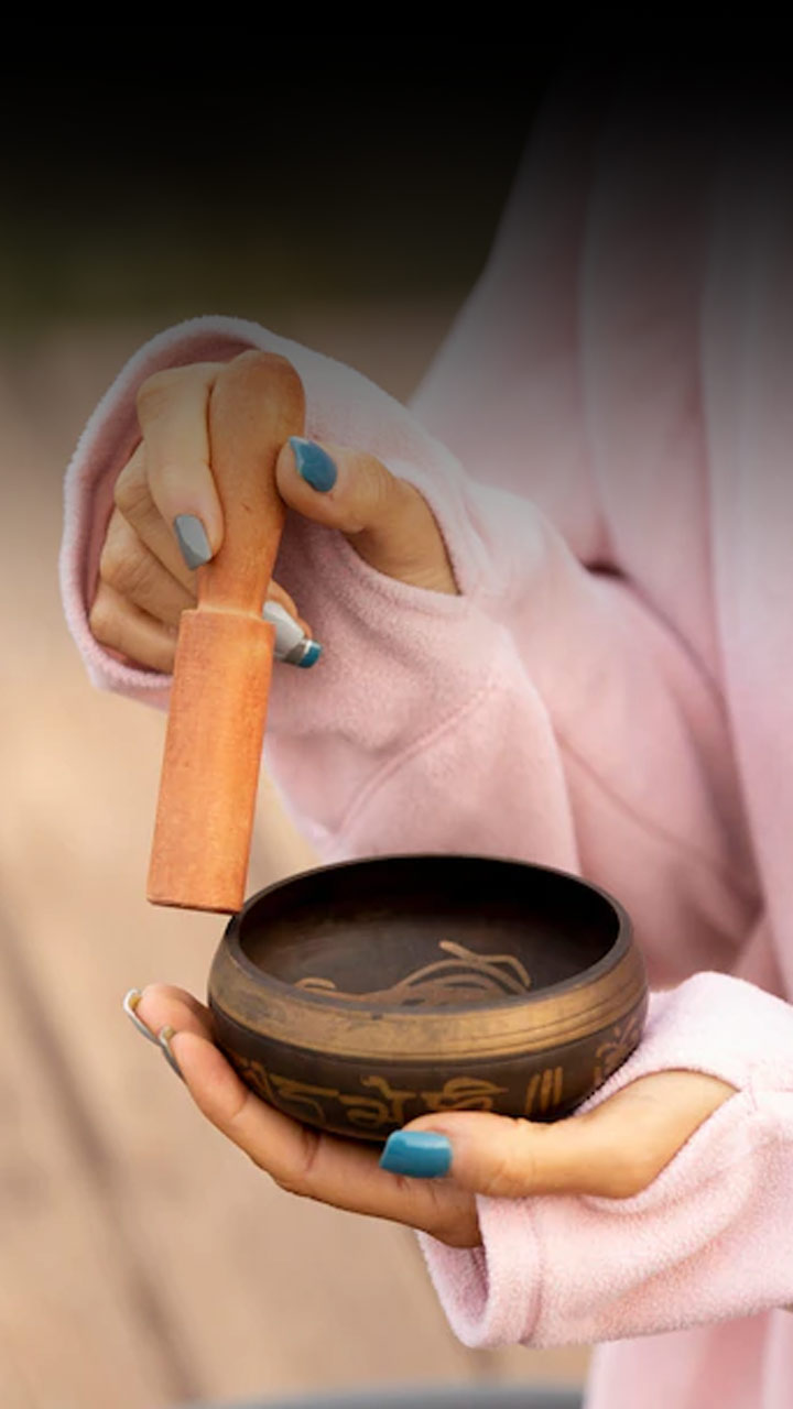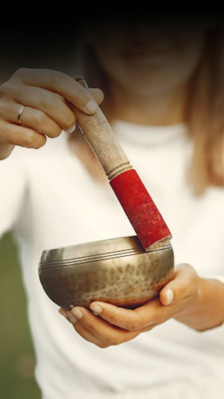 Sound therapy uses sound as a tool to harmonise mind and body. Therapist uses a sound whose vibrations help realign mind and body.
