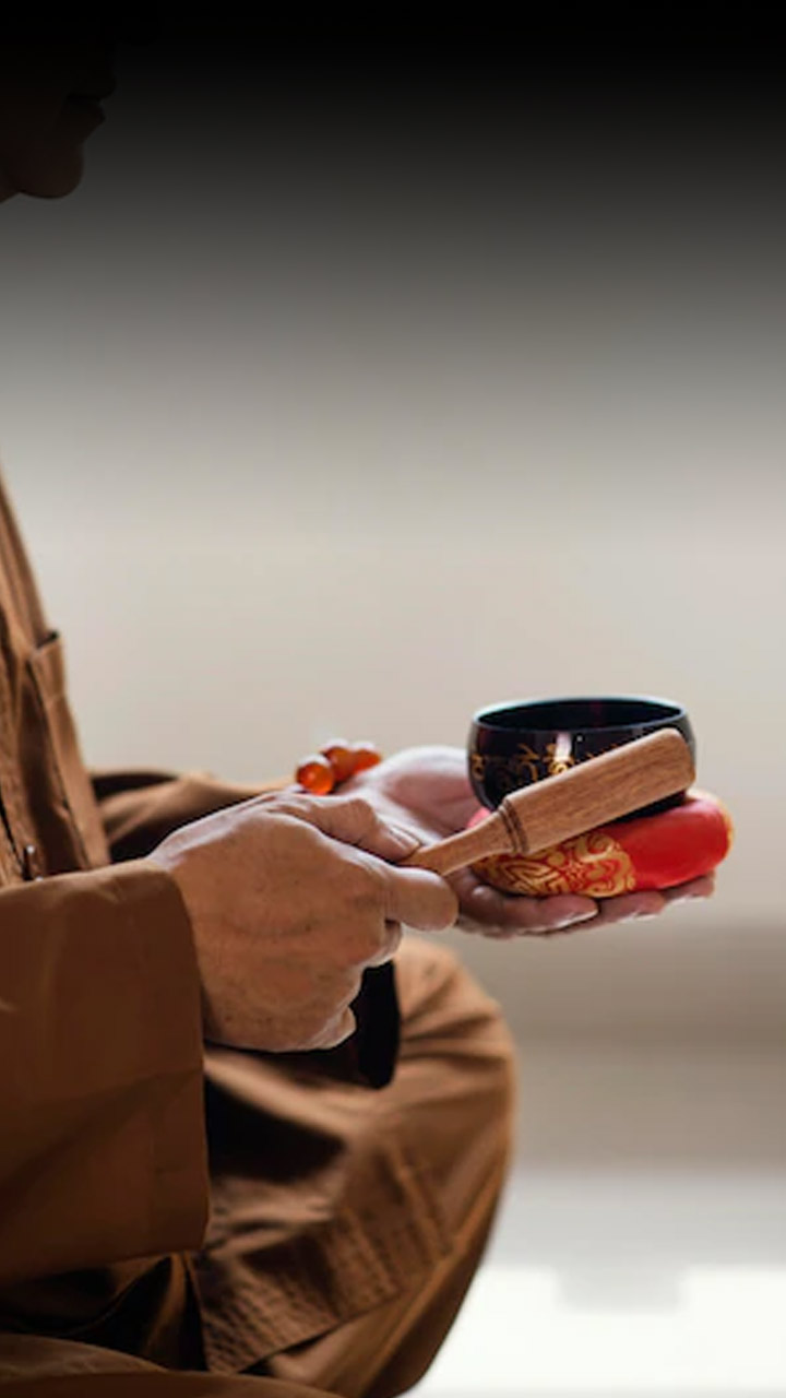 A sound healing expert uses instruments like crystal singing bowls, metal gongs and tuning forks to heal the mind.
