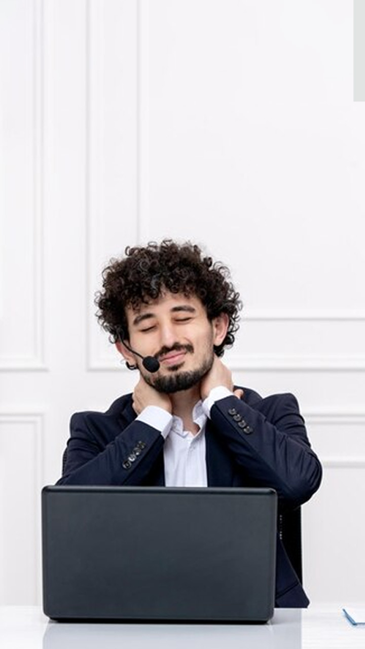 Avoid sitting with your shoulders hunched and your neck forward. Sit up straight and move your body more often.