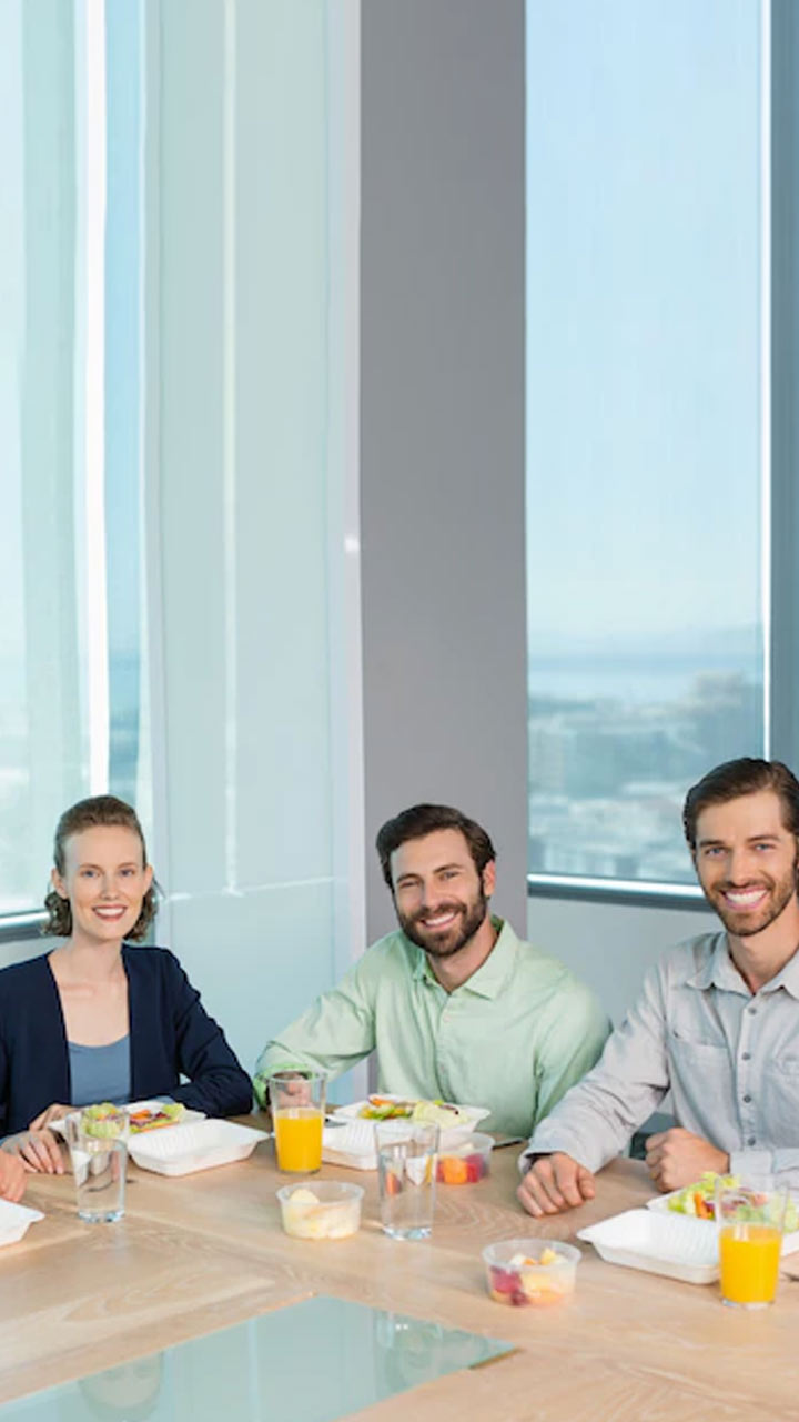 Having lunch in a group and sharing it with your team is one of the best ways to forget about work stress.