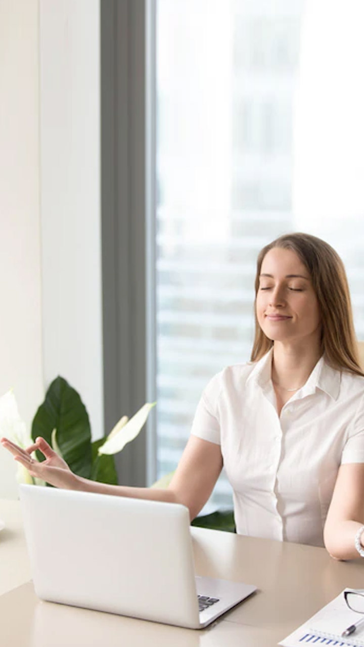 Taking a deep breath is one of the most effective ways to relax your mind at your desk.
