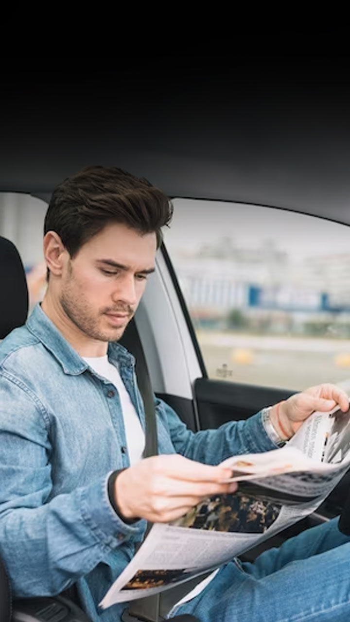 You should avoid reading in the car; instead, look outside at distant objects to prevent motion sickness.