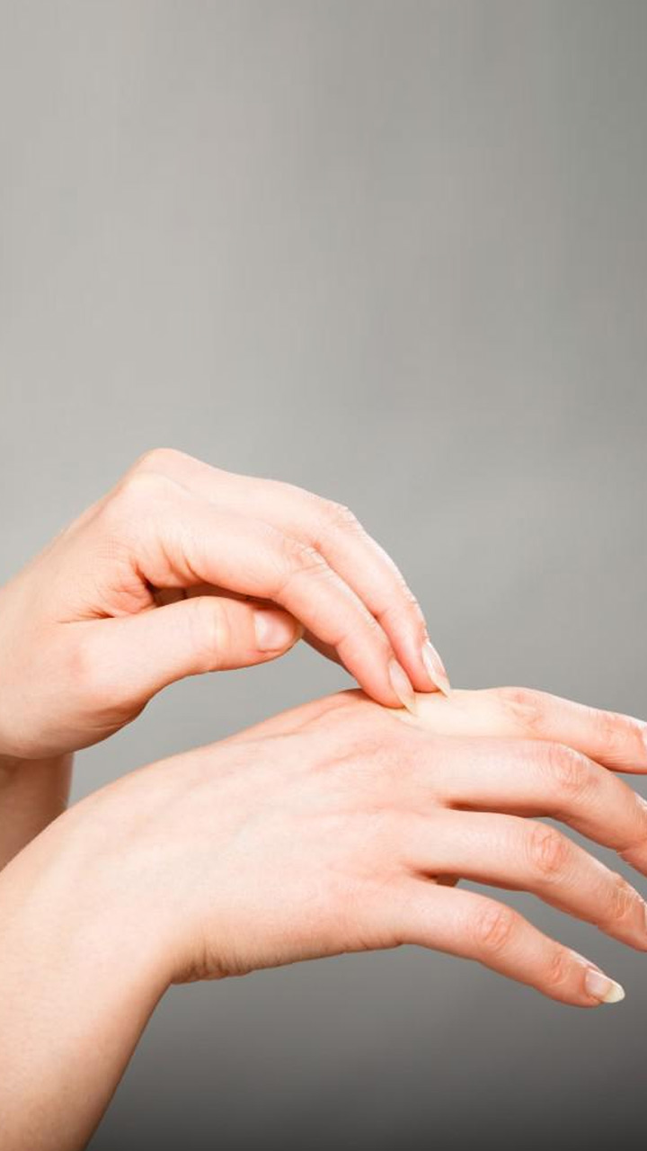 Also known as contact dermatitis, it occurs when your fingers or hands come in contact with an irritant. This may cause itching, redness, or irritation on the contact area of the skin.