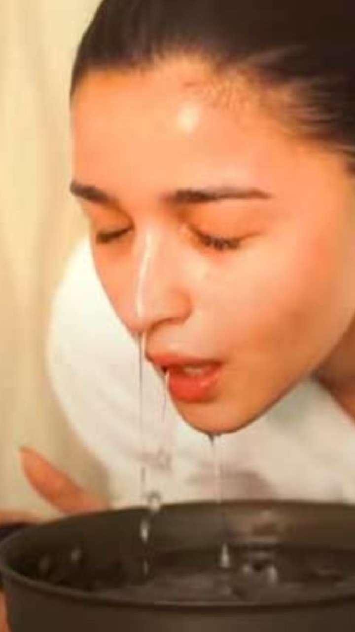 After washing her face with her favourite cleansing balm, Alia Bhatt takes a bowl of water and fills it with ice cubes.