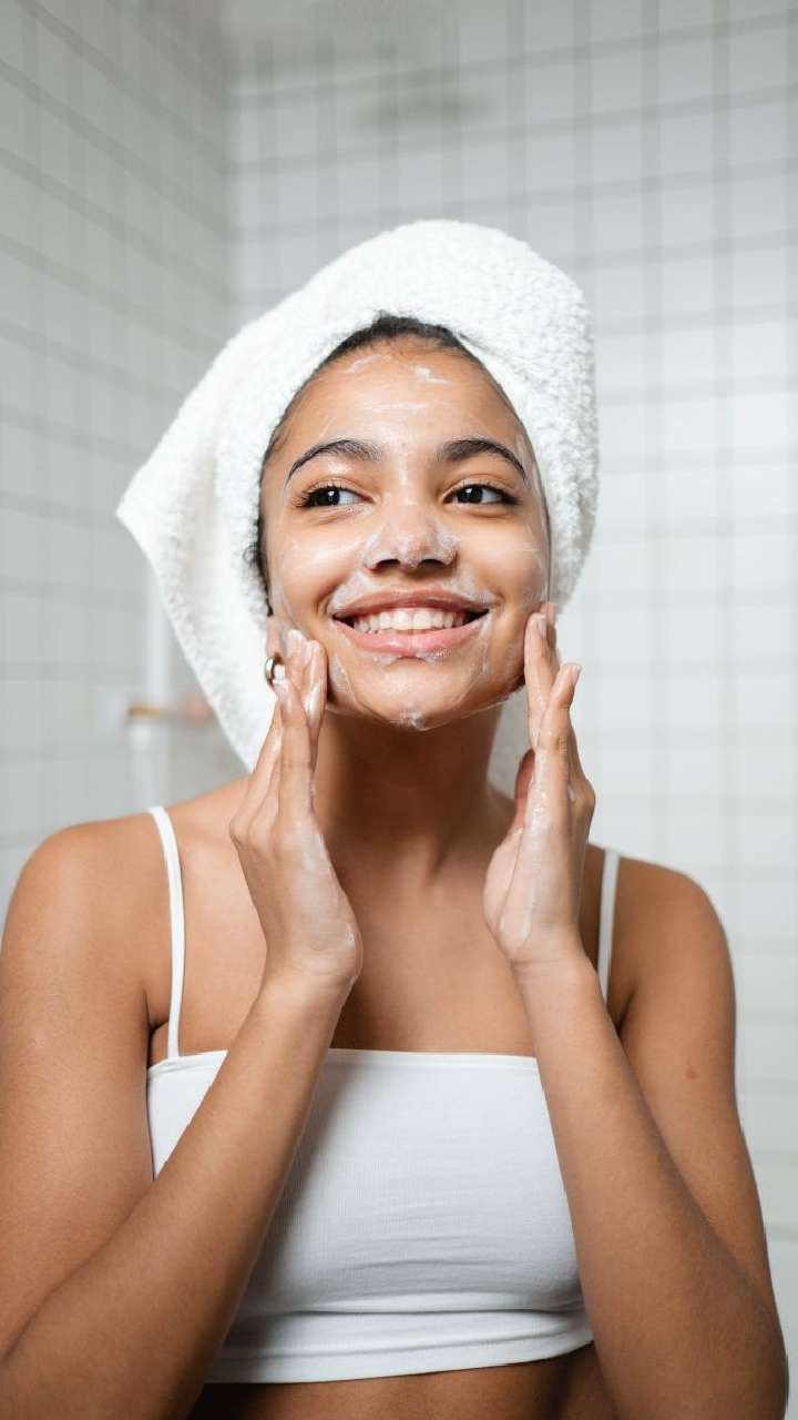 Firstly, clean your face with a mild face cleanser. It will remove dirt and impurities from your face.