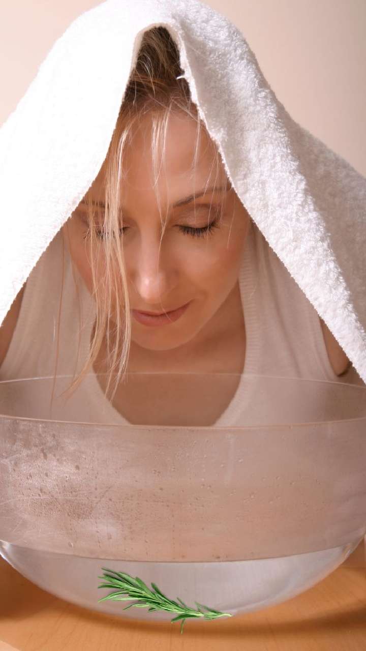Bring a pot of water to a boil, add some fresh rosemary leaves, and inhale the steam to open your pores. Put your face over the pot (making sure not to get burned) and cover your head with a towel.