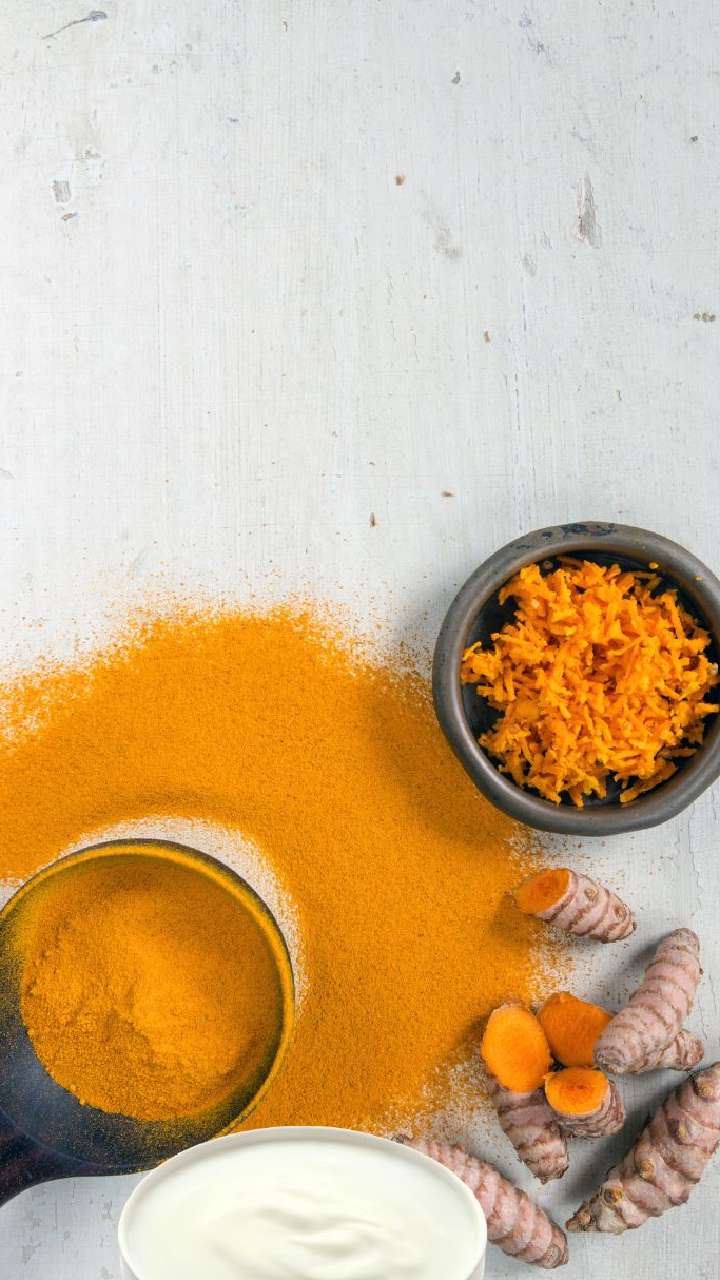 Turmeric and curd face mask can be easily made by mixing both of them together, it can help to reduce acne, dullness and can provide a natural glow to your skin.