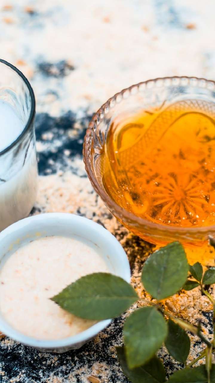 Gram flour (besan) helps to get rid of the dead skin cells as well as the tan. Add an appropriate amount of water or yoghurt to form a paste.