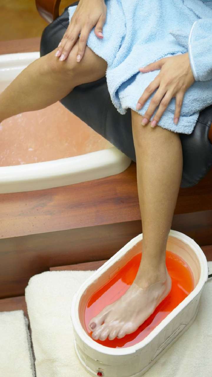 DIY PARAFFIN WAX TREATMENT Melt paraffin wax, mix with coconut oil, and apply to your feet. Let it cool and peel off for softer, smoother heels. Repeat weekly.