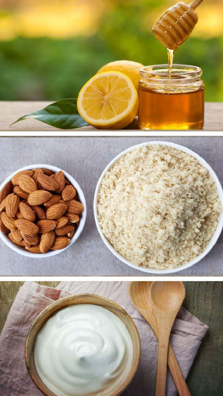 To make this almond mask, you will need three teaspoons of finely ground almonds, one tablespoon of honey, and one tablespoon of plain yoghurt.