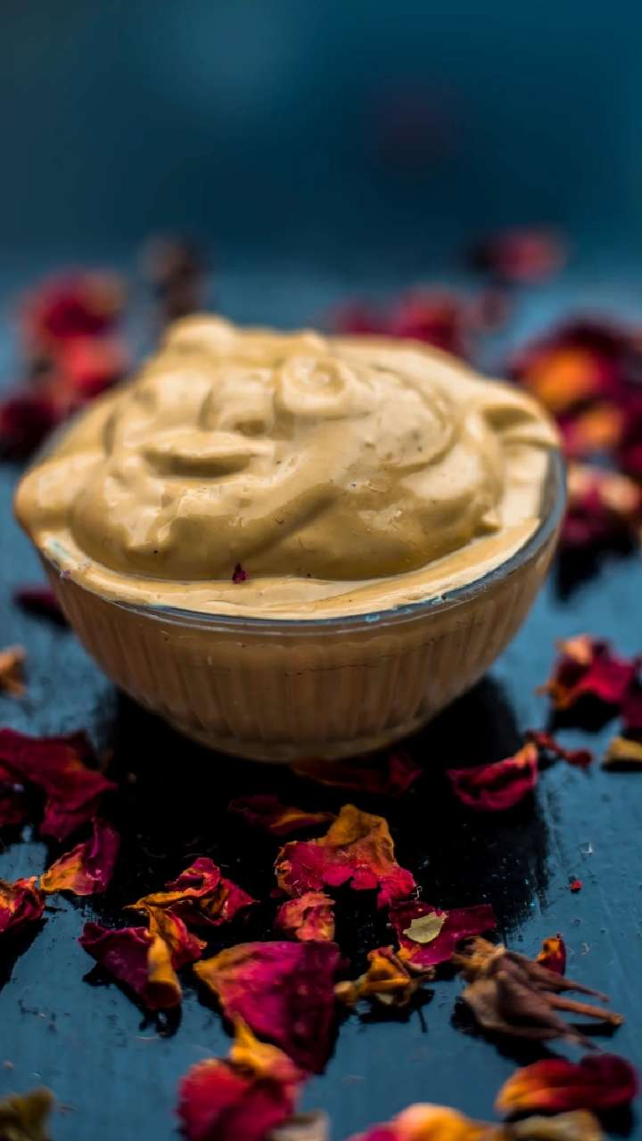 Make sure the mixture has a spreadable consistency. If it is too thick, add a little more rose water.