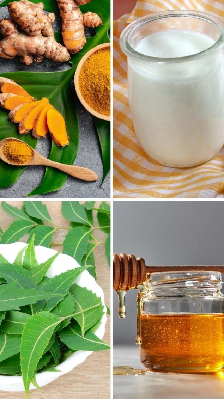 To make a neem face mask, you will need only four ingredients: one teaspoon of neem powder or crushed neem leaves, one tablespoon of honey, one teaspoon of turmeric powder, and one teaspoon of yoghurt.