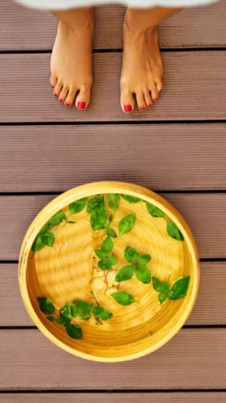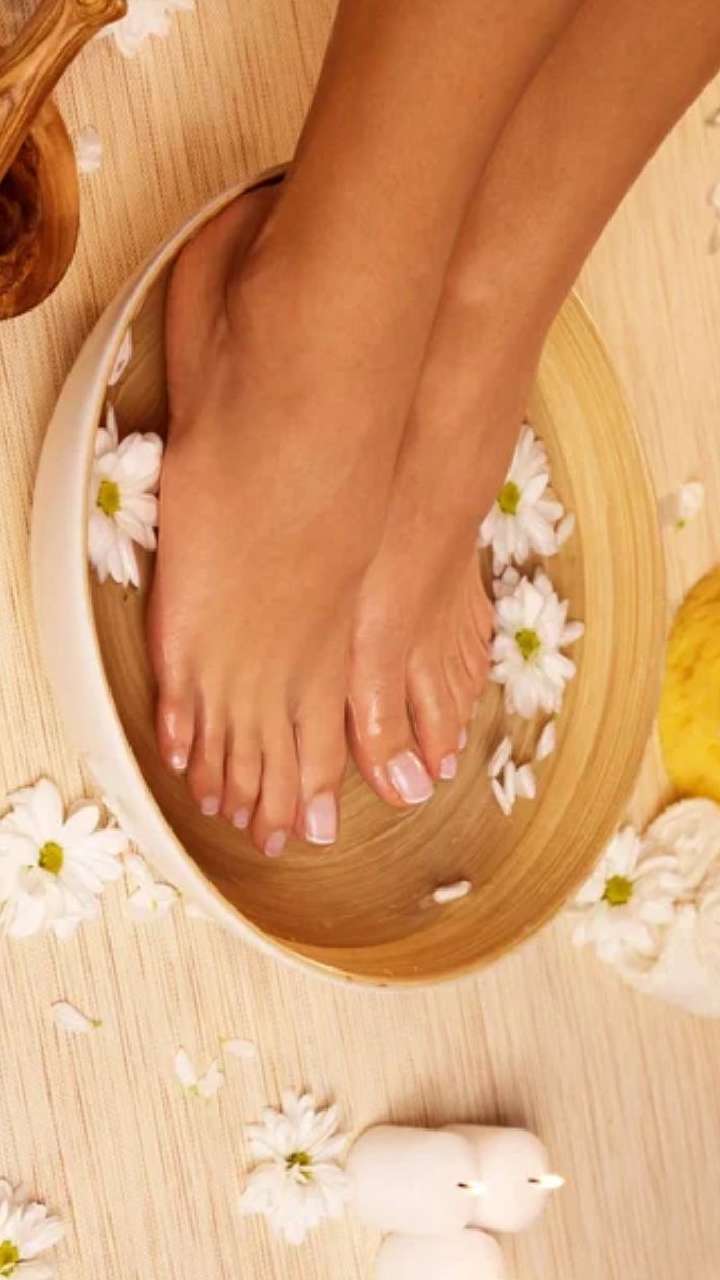Fill the basin with warm water and add Epsom salt or essential oils. Soak your feet for 10–15 minutes to relax and soften the skin.