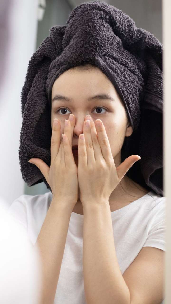 Start your skincare routine with a gentle cleanse. Wipe your face dry to make a clean canvas for the turmeric and ghee cream.