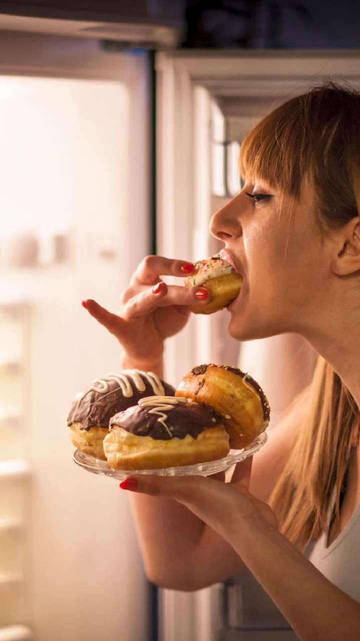 Eating lots of high-calorie snacks before bed can make you gain weight, especially around your tummy.