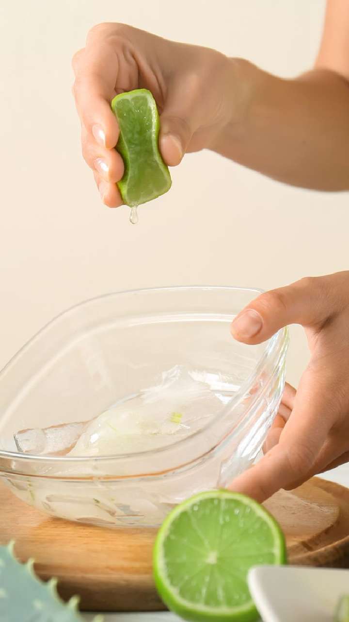 Enhance the taste of aloe vera juice by adding a squeeze of fresh lemon. Lemon not only adds flavour but also aids in digestion and detoxification.