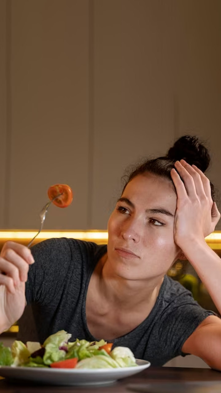 When you eat slowly, your brain recognises that you've eaten something faster and makes you feel full halfway through.