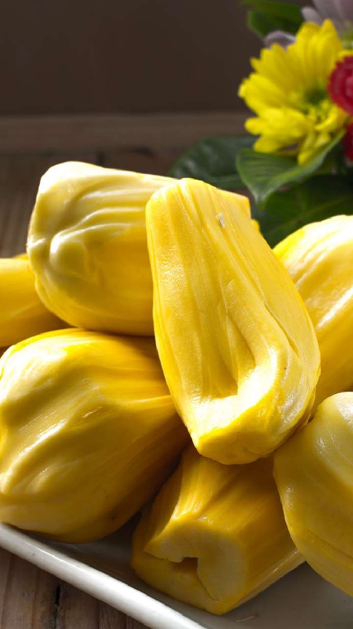 Mix 1 cup of ripe jackfruit cubes with almond milk, spinach and a banana to make a yummy and wholesome smoothie which supports weight loss because of its fibre-rich content.