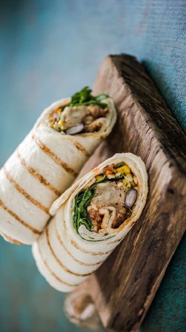 Make a wrap out of whole grain bread and fill it with shredded jackfruit, lettuce, tomatoes and hummus for a light but satisfying meal that you can take with you and suitable for weight loss.