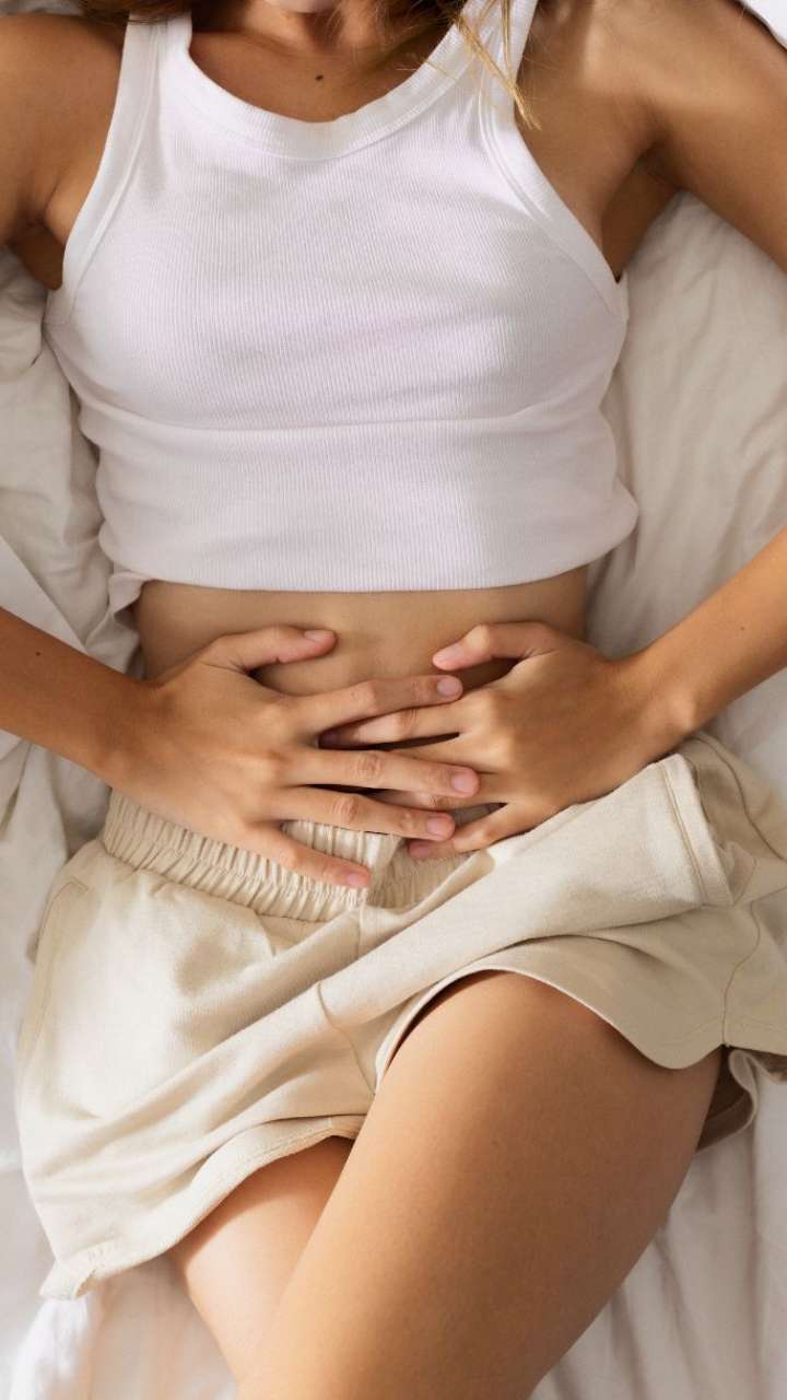 Yoga poses like cat-cow,reclined bound, legs on the wall, or child pose can help massage the abdomen and ease lower back pain.