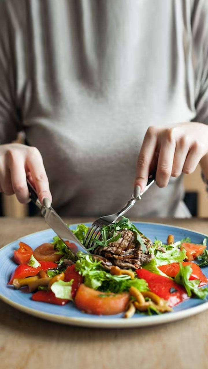 Mindful eating involves paying attention to hunger and fullness cues, eating slowly, and savouring the taste of food, helping to control cravings.