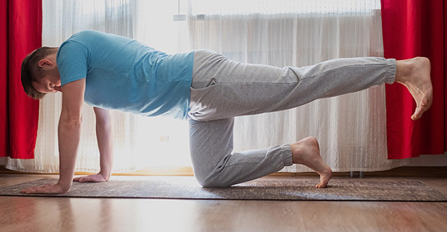 - इसके बाद अपने पैरों को पीछे की ओर उठाएं। इस दौरान आपके हिप्स और उठाए हुए पैर एक सीध में होने चाहिए।