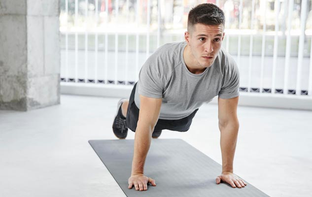 - अब आप पुश-अप्स पोजिशन में आ जाएं।