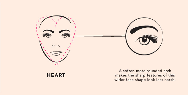 People with a heart shaped face tend to have a narrower jaw towards the chin and a broad forehead and this forehead is something which needs our attention so that attention can be drawn away from it. Confused? Let us make it a little simple for you. As people with a heart shaped face have a broad forehead the objective is to make the forehead look a bit narrower and the chin less pointy. To do so the perfect eyebrow shape would be short in length and with a soft-slight curve. As they are kept closer together they draw attention towards the centre of the face and help in attaining those balance proportions.