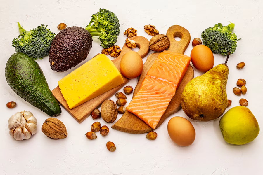 - Healthy fats, such as olive oil, avocado, nuts, seeds, and fatty fish