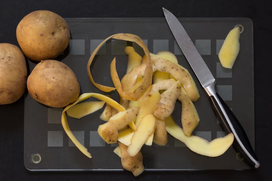 As opposed to common practice, potatoes can be consumed with their peels on. In fact, they are more nutritious. Potato peels contain many nutrients, including fibre, potassium, vitamin C, and vitamin B. Research suggests potato peels contain about 40–50% dietary fibre. It also contains flavonoids, such as rutin, which exhibit antimicrobial, antifungal, and antiallergic activities.