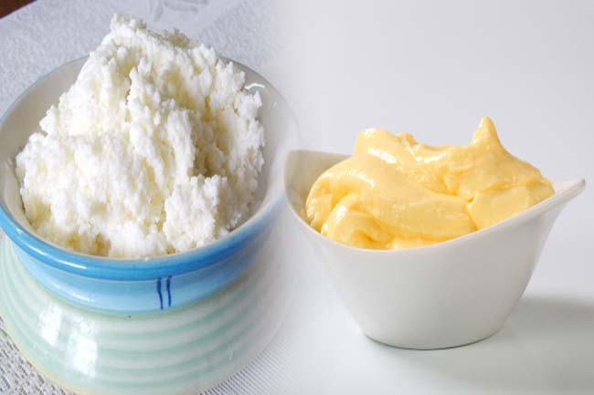 येलो बटर नमकीन मक्खन होता है और इसमें बीटा कैरोटीन की मात्रा काफी ज्यादा होती है। वहीँ दूसरी तरफ वाइट बटर में बिल्कुल भी नमक नहीं होता है और इसमें बीटा कैरोटीन की मात्रा भी कम होती है। दोनों में रंगों का फर्क सिर्फ उसमें मौजूद फैट के कारण होता है। नमकीन बटर में नमक इसलिए मिलाया जाता है जिससे ये ज्यादा दिन तक खराब न हो और इसीलिए दुकानों या रेस्टोरेंट में यही वाला बटर ज्यादा मिलता है। इसका अधिक सेवन आपके शरीर में कैलोरी और कोलेस्ट्रॉल की मात्रा बढ़ा सकता है। हेल्दीफाईमी के अनुसार एक चम्मच वाइट बटर में 103.5 कैलोरी होता है वहीँ येलो बटर में 200 कैलोरी होती है।