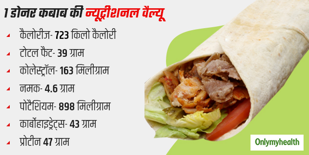 एक सामान्य डोनर कबाब (लगभग 390 ग्राम) में न्यूट्रिएंट्स की मात्रा इस तरह होती है-