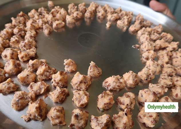 इस स्नैक्स को तैयार करने के लिए सबसे पहले अलसी को एक बर्तन में रखें। अब उड़द दाल के बेसन को पानी में मिक्स करें। इसमें नमक, कलौंजी और अजवाइन डालें। अब इस पेस्ट को अलसी में डालें। अब इसे अच्छे से मिक्स करें। इस मिश्रण को बड़ी की तरह धूप में एक कपड़े पर रखें। 2 दिन तक इसे अच्छे से सुखाएं।