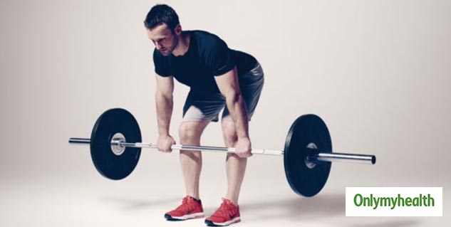 - स्टेप-2-झुककर बारबेल को उठाएं और बारबेल को उठाकर आपको बिल्कुल सीधा खड़े हो जाना है। जब आप सीधे खड़े होते हैं तो बार आपके हाथों में होती है और उसे जांघों तक रखना है यानि आपको बार को लेकर झुकना नहीं है।