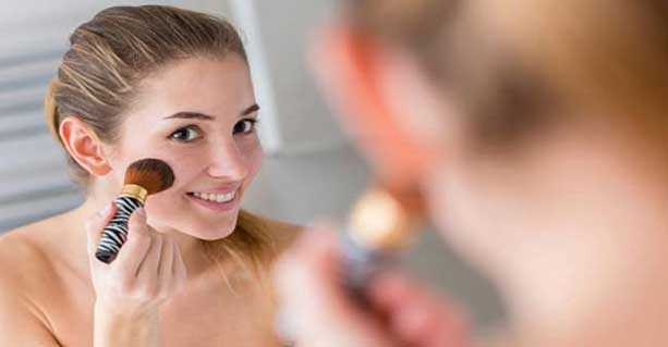 अपने चेहरे को मेकअप के जरिये निखारने के लिए सबसे पहले क्लींजिंग से चेहरे को अच्छी तरह से साफ करें। फिर टोनिंग और मॉश्चरराइजिंग करें। इसके बाद कंसीलर लगाएं। कंसीलर से फेस के दाग-धब्बों को छिपाने में मदद मिलती है। फिर फाउंडेशन लगाएं। ध्यान रहे कि फाउंडेशन, स्किन कलर से मैच करता हुआ ही हो। शिमरलुक देने के लिए क्रीम ब्लशर लगाएं। इसके बाद फेस पाउडर लगाएं और एक नेचरल बेस बनाएं।
