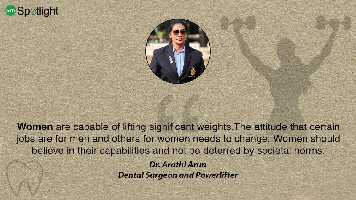 When Dr Arathi expressed her interest in powerlifting, people discouraged her, saying it wasn't for women, especially not for a married woman with kids. But she was determined.