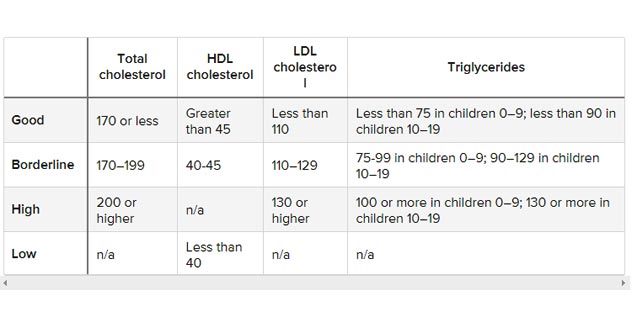 जर्नल ऑफ द अमेरिकन कॉलेज ऑफ कार्डियोलॉजी में प्रकाशित ब्लक कोलेस्ट्रोल प्रबंधन पर 2018 दिशा-निर्देशों के मुताबिक, यह व्यस्कों के लिए स्वीकार्य योग्य, बोर्डरलाइन और सही आकलन है।