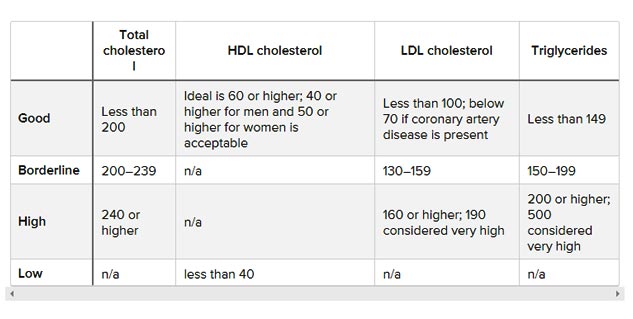व्यस्कों के लिए कोलेस्ट्रोल चार्ट (Cholesterol chart for adults)