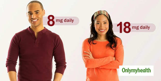 अगर आप पुरुष हैं तो आपको प्रति दिन लगभग 8 मिलीग्राम (mg) मिलना चाहिए। अगर आप 19 से 50 वर्ष की महिला हैं, तो आपको इससे दोगुने से अधिक की आवश्यकता है प्रति दिन लगभग 18 मिलीग्राम। अगर आप गर्भवती हैं तो 27 मिलीग्राम तक जा सकता है और अगर आप स्तनपान करा रही हैं तो 10 मिलीग्राम तक नीचे गिर जाता है। 50 वर्ष की आयु के बाद, महिलाओं की ज़रूरतें पुरुषों की समान हो जाती हैं यानी की प्रति दिन 8 मिलीग्राम।